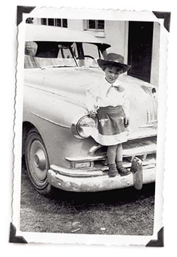 LAURA AS A GIRL: in 1956, wearing a cowgirl outfit, poses on her maternal grandfather’s new Pontiac.