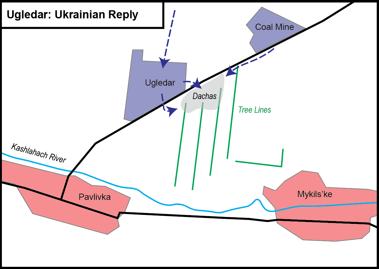 Finally, and perhaps most importantly, the Russian assault force neglected to attack or at least suppress the coal mine to the northeast of Ugledar. Ukrainian forces there were able to organize a quick counterattack, which came at an oblique angle towards the dachas. Once reserves arrived in Ugledar and counterattacked as well, Russian troops were forced to fight for their position in the dachas.