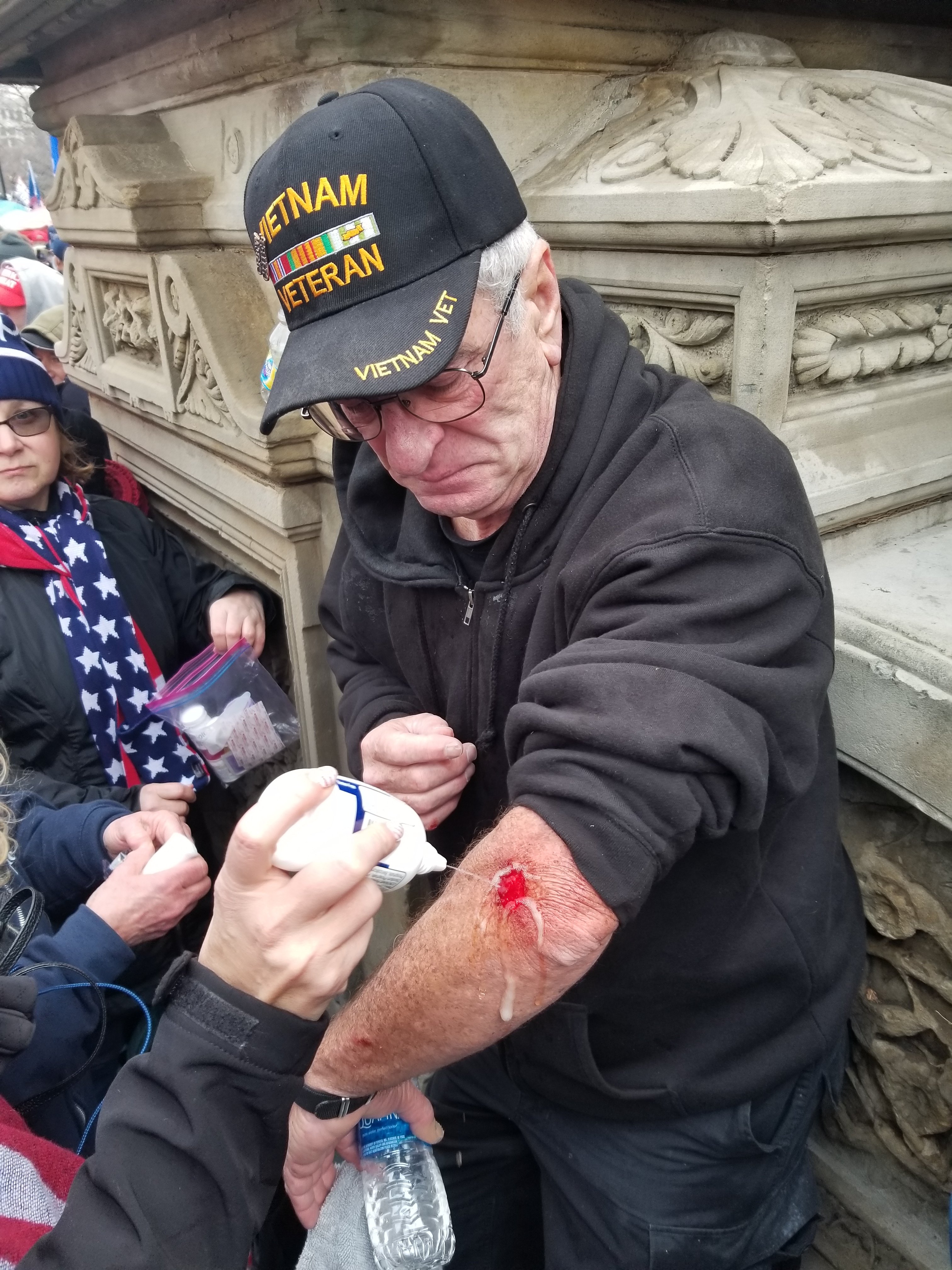 Chatted with a guy who helped storm the Capitol, who got shot up by the cops. Pic related.