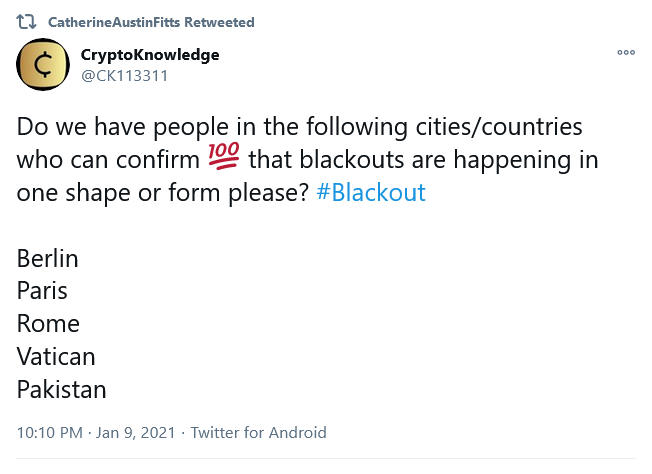I need to catch up on the most recent posts, but has anyone here heard about these alleged blackouts?