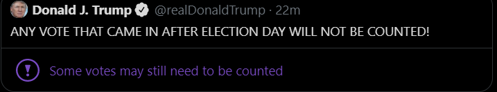 This standstill makes more and more sense if Trump is going to win. Everything has been frozen right now to the moment where Biden looks like probable winner. That's what is being imprinted on people's minds at this very moment. And when Trump is righfully declared winner in the end, this will ignite the chaos in the street like never before. If Biden would win after this stalemate, the protests would run out of steam, while activists would sigh from relief and go back to sleep (in their minds the "evil" would have been defeated). Trump supporters would probably protest in a more civilized manner. Liberals already had Obama with false "hope and change" after Bush, so this programming is not needed anymore. OSIT.