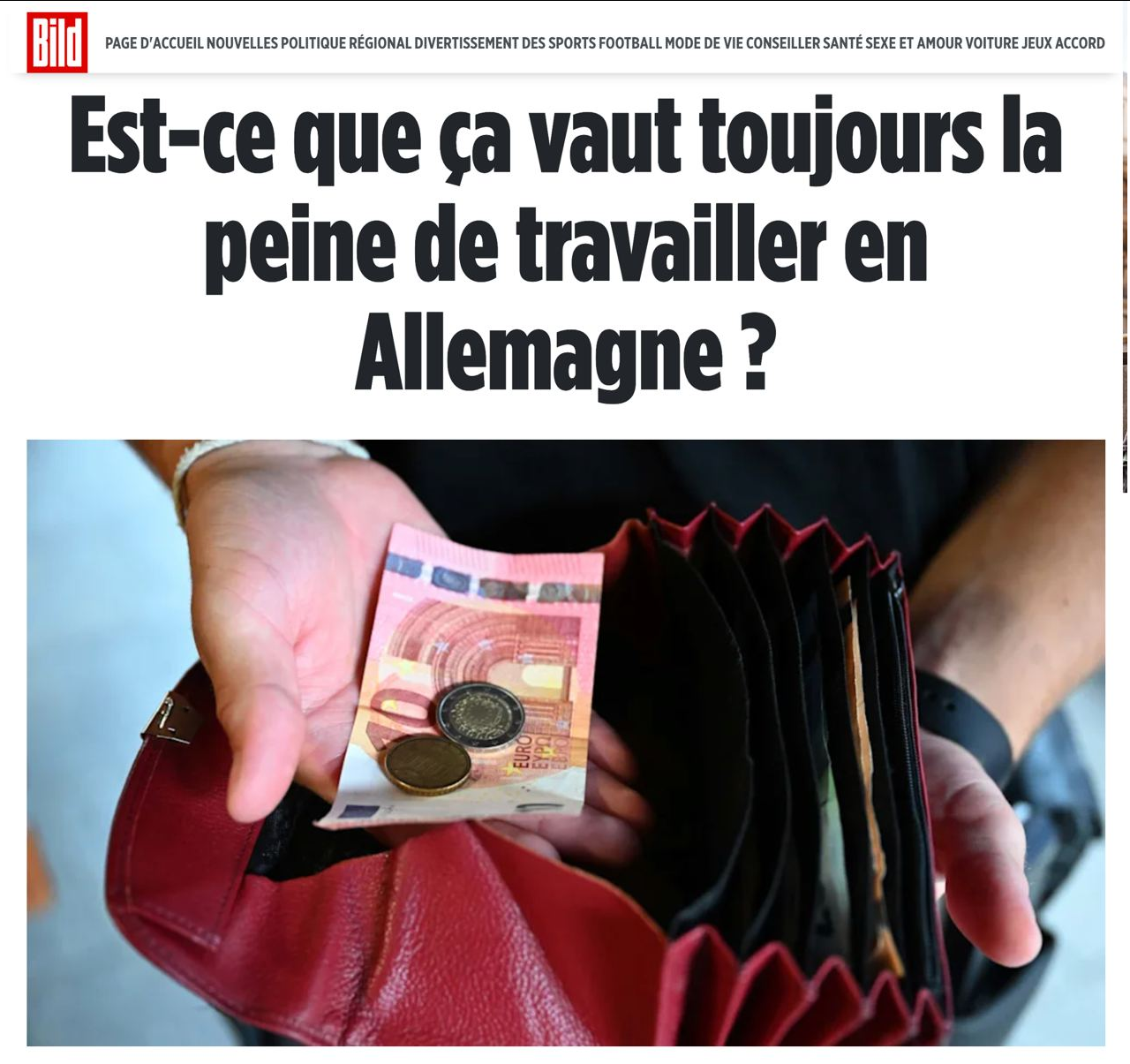 "Conséquence amère : quiconque se lève tous les jours et travaille au salaire minimum recevra l'année suivante un salaire majoré inférieur à celui d'un bénéficiaire d'aide sociale qui ne travaille pas du tout. Le travail acharné en vaut donc de moins en moins la peine en Allemagne !"