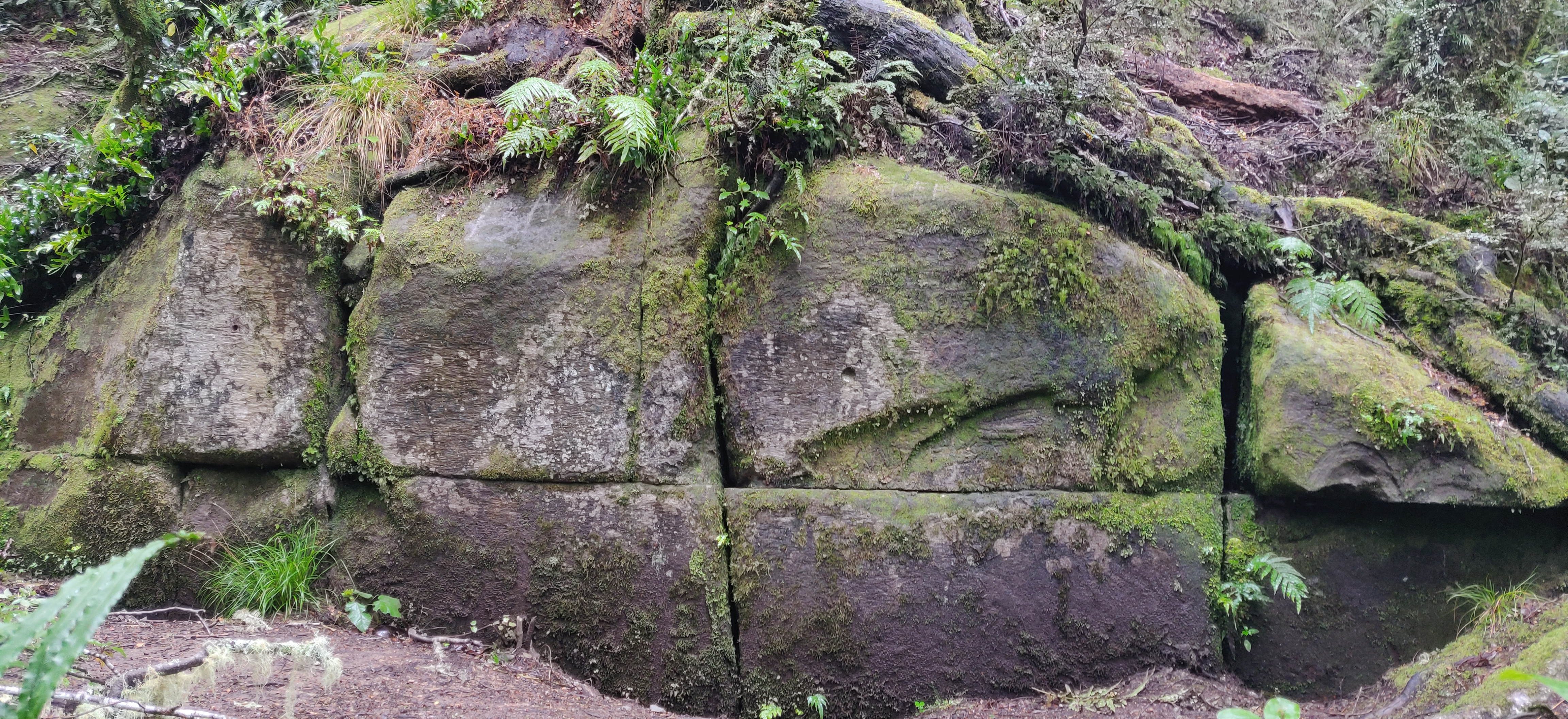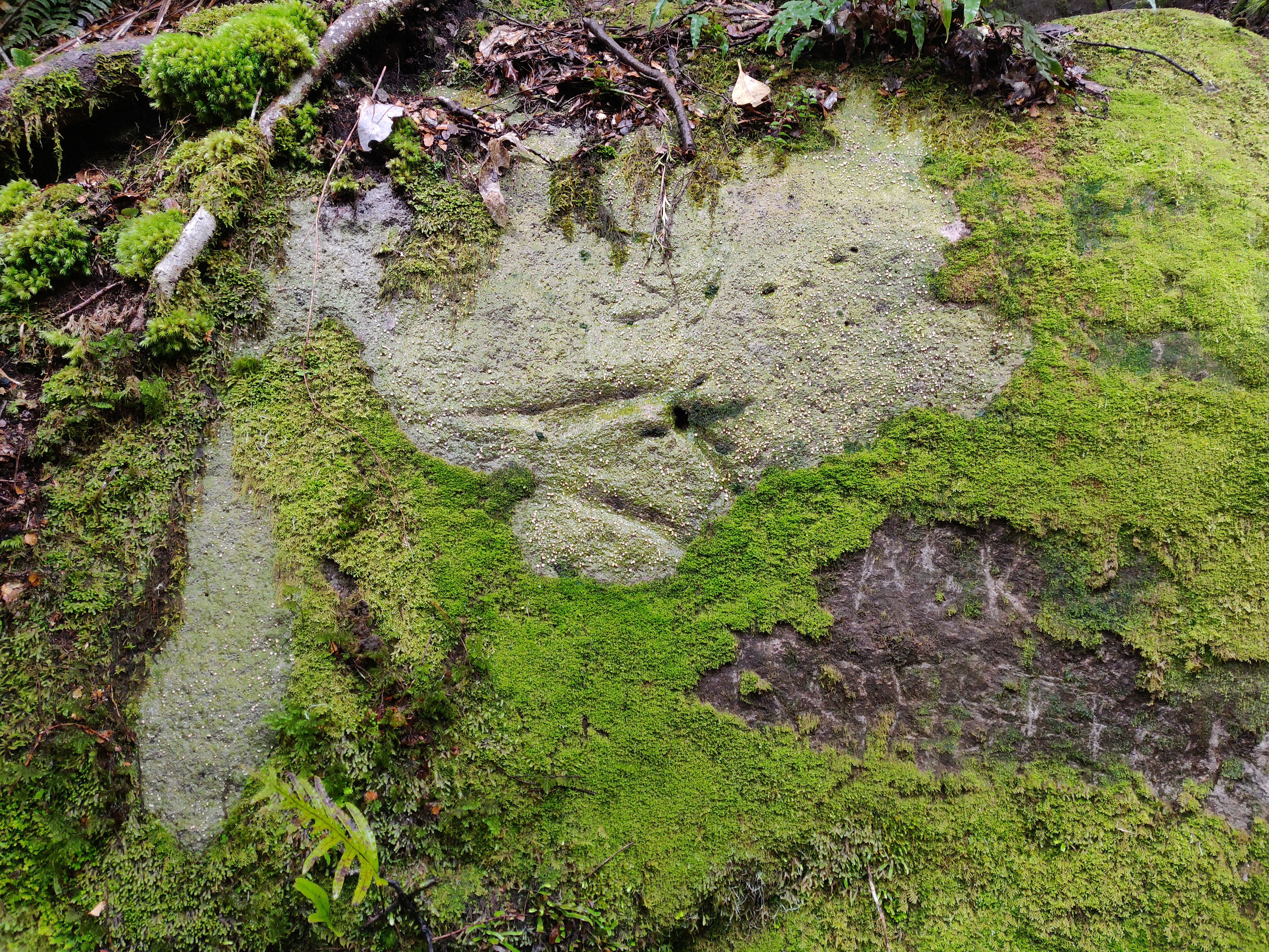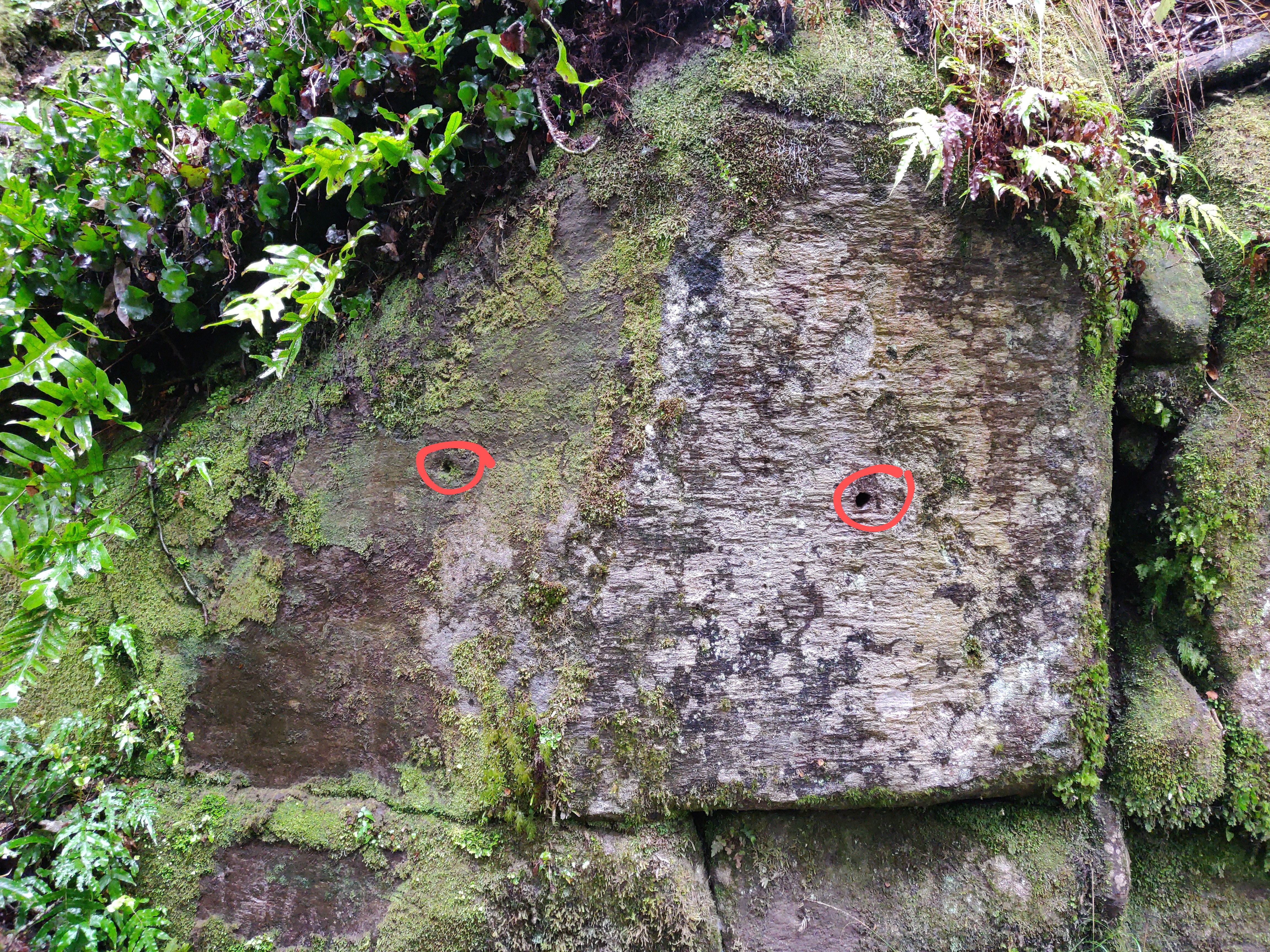 Moreover, there appeared to be a curious pattern of distinct dots, often situated around the middle of some blocks. I thought about hunters shooting at rocks for fun or practice, but it doesn't really stand.