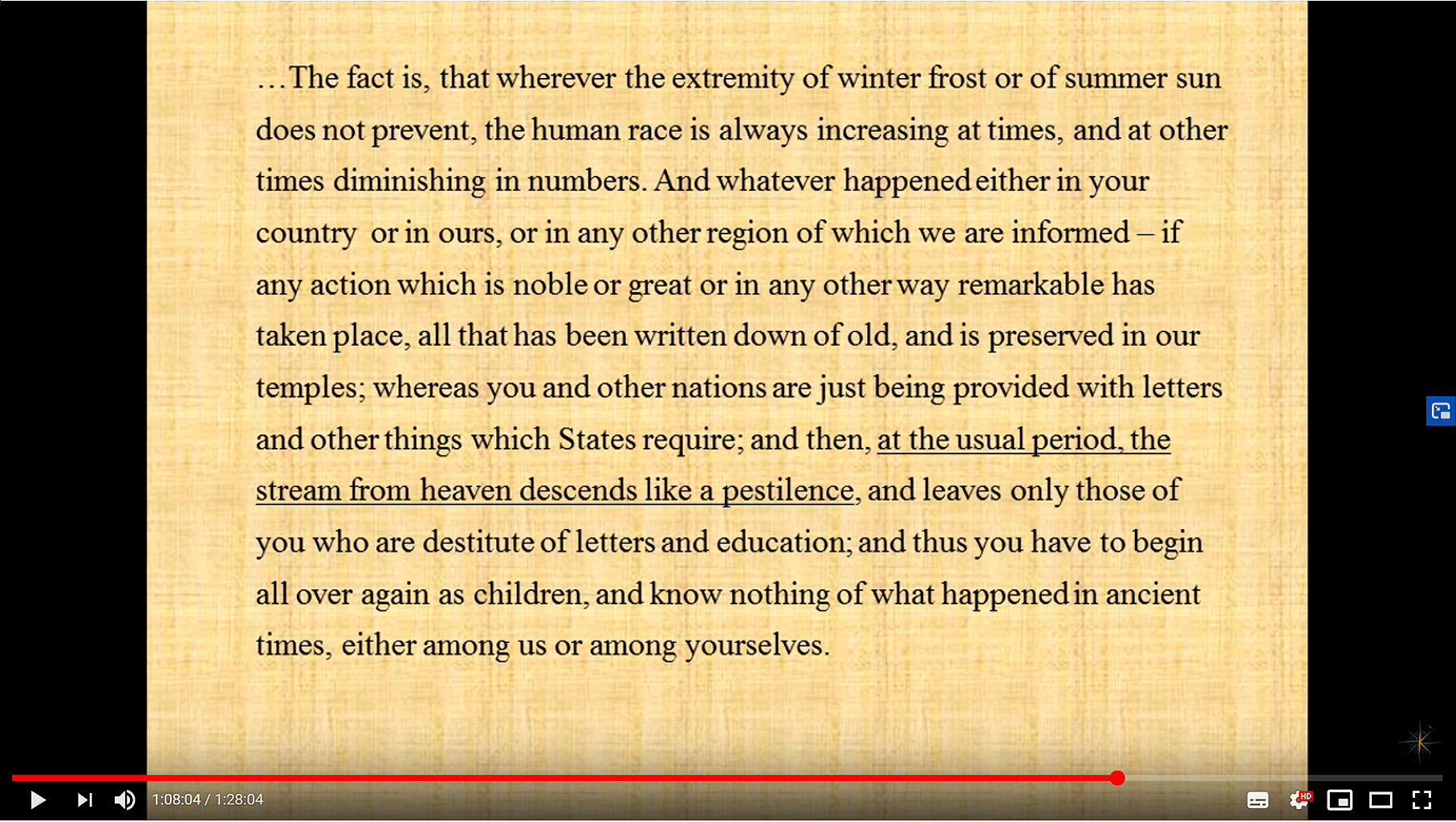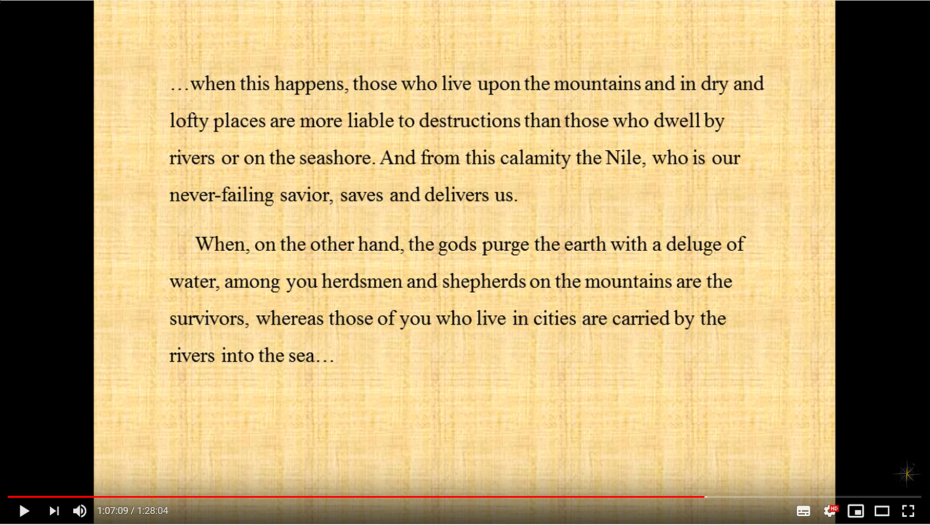 - Long history of periodic cataclysms. Preserved knowledge of prehistoric times (before the great deluge) --> rise and fall of many civilisations