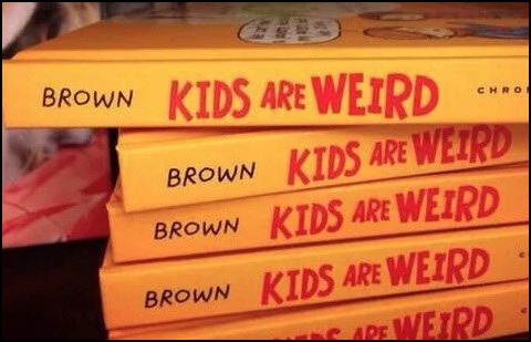 It seems you are asking for the other image Vulcan uploaded. If that's true, then Brown is the name of the writer. The funny thing is when you read it all at once as forming part of the title, which reads 'Brown Kids are Weird'. At least that's how I got it, but if I'm wrong it's still funny.