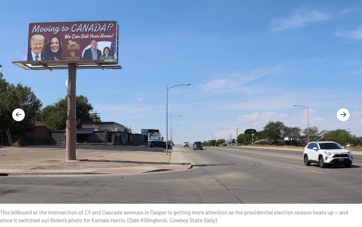 A Casper real estate broker is ready for people to move to Canada after the election. He's erected a billboard with photos of Donald Trump and Kamala…