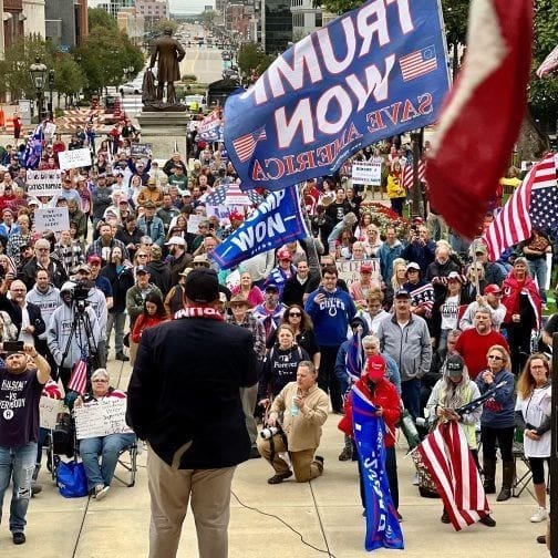 The rally was sponsored by Election Integrity Force and Fund, a group founded by Michigan patriots. The group is recruiting volunteers to canvas neighborhoods and find voting “anomalies.”