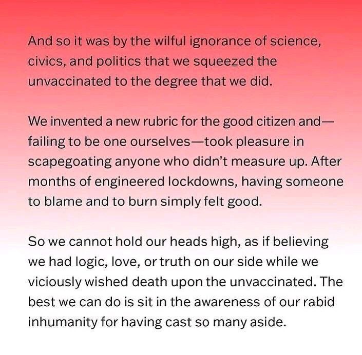 I personally have been recently reunited with several people we lost connections with, due to our refusal to “bend the knee”,.