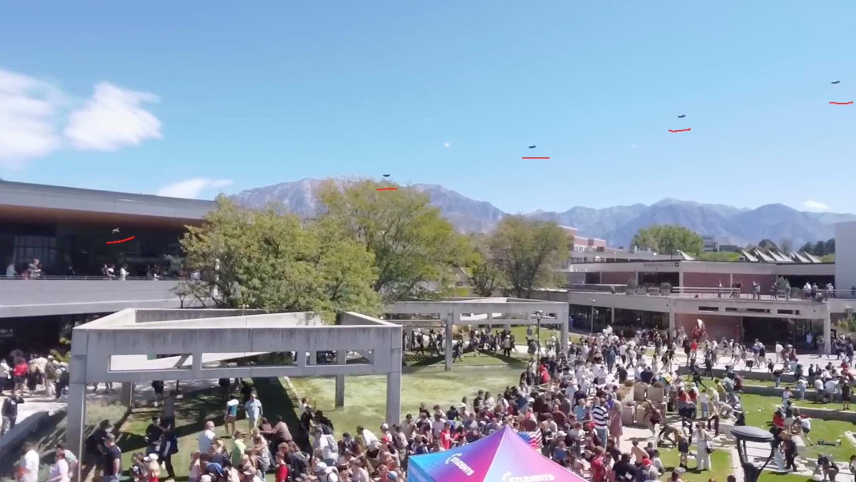 If you watch the full video of the Utah event above, you can find plenty of other "mystery drones": e.g. at 0:37, 2:19, 2:20, 4:43, 6:23, 10:42, 11:29, 12:28, 14:02, 14:58, 15:45, 16:14, 17:19, 17:48, 19:05, (gunshot is at 19:09,) 19:40, 19:52 is the totally-not-a-bug "drone", which shows up again for a single frame at 20:00, 1.5x bigger (bottom right image in collage below). The place was positively swarming with "drones". And that was just the obvious ones in the first 22 minutes. I’m sure if you focused on areas below the skyline there would be more.
