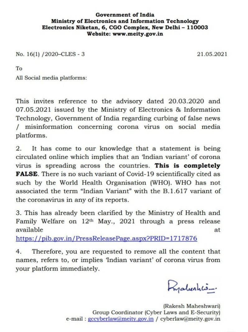 Several media reports have covered the news of World Health Organisation (WHO) classifying B.1.617 apib.gov.in