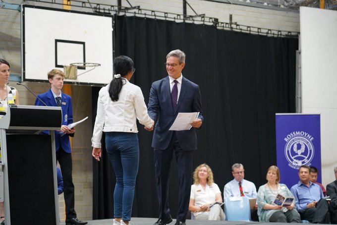 My old friend from years ago congratulating high achievers at a ceremony.