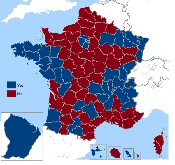 The vote in question was 2005 French European Constitution referendum - Wikipedia and here is a map from the page: View attachment 28449