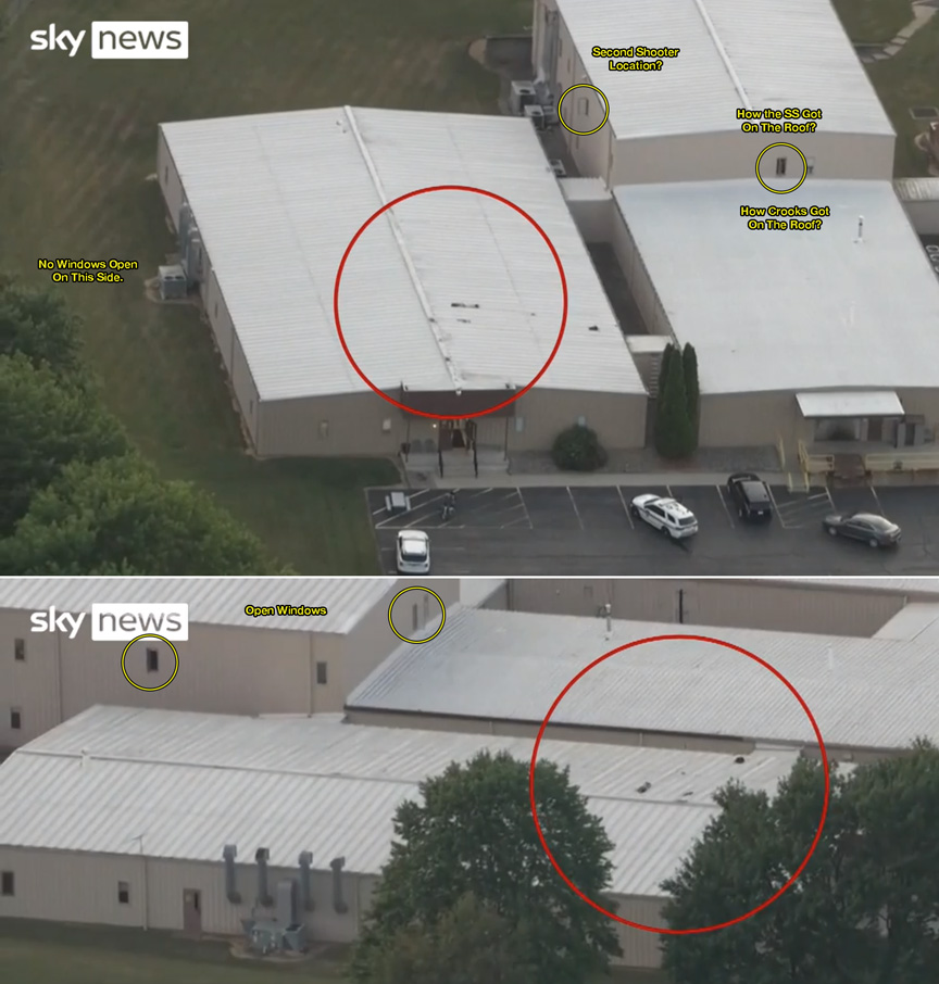 32:28 - You come back to the original question: obviously this was staged. Obviously it was set up and it was allowed to happen. The question is, was Trump in on it or not? Were shots fired from that roof where the shooter was allegedly at or was there someone else on the water tower taking shots at civilians or was there another shooter in another spot, a third spot? I'd suggest there wasn't because (water tower stuff again) ...and we know the SS knew the shooter (Crooks) was there for quite a long time and they didn't act on it. What's going on there?