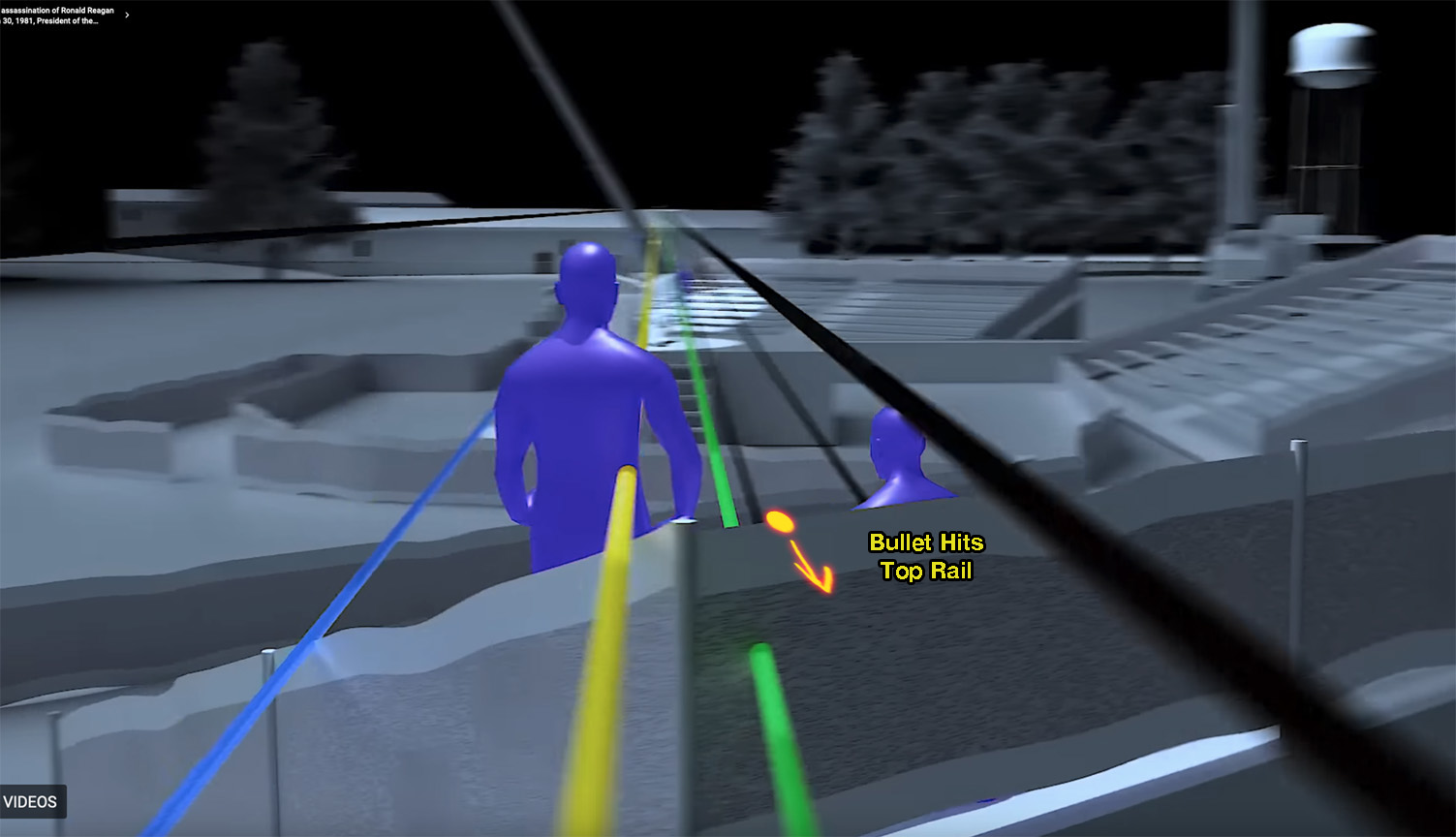 The first three shots were consistent with alleged weapon A, the next five were consistent with alleged weapon B, and the final “acoustic impulse” was emitted by a possible weapon C, per audio analysis by Catalin Grigoras, director of the National Center for Media Forensics at the University of Colorado in Denver, and Cole Whitecotton, Senior Professional Research Associate at the same institution.