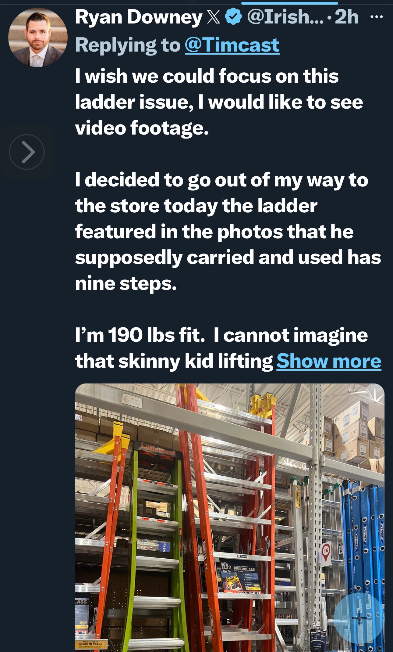 “Inside the perimeter” and “outside the perimeter” were the key phrases slung around Butler Township Police Department this morning. I had a feeling there were active discussions on assigning blame where these were the operative phrases. Clearly a ladder was used by the Crooks shooter to ascend to the roof. Elon Musk has tweeted out the location, which is very close to a SWAT ladder in the same building.