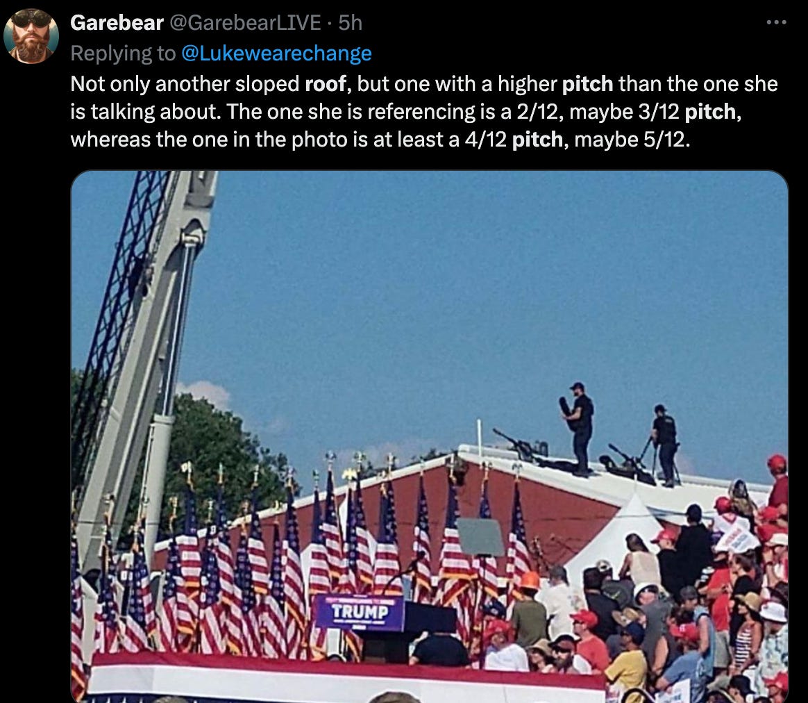 The pitch of the roof the snipers used to take out Crooks is actually much steeper, making Director Cheatle’s excuses almost appear comical.