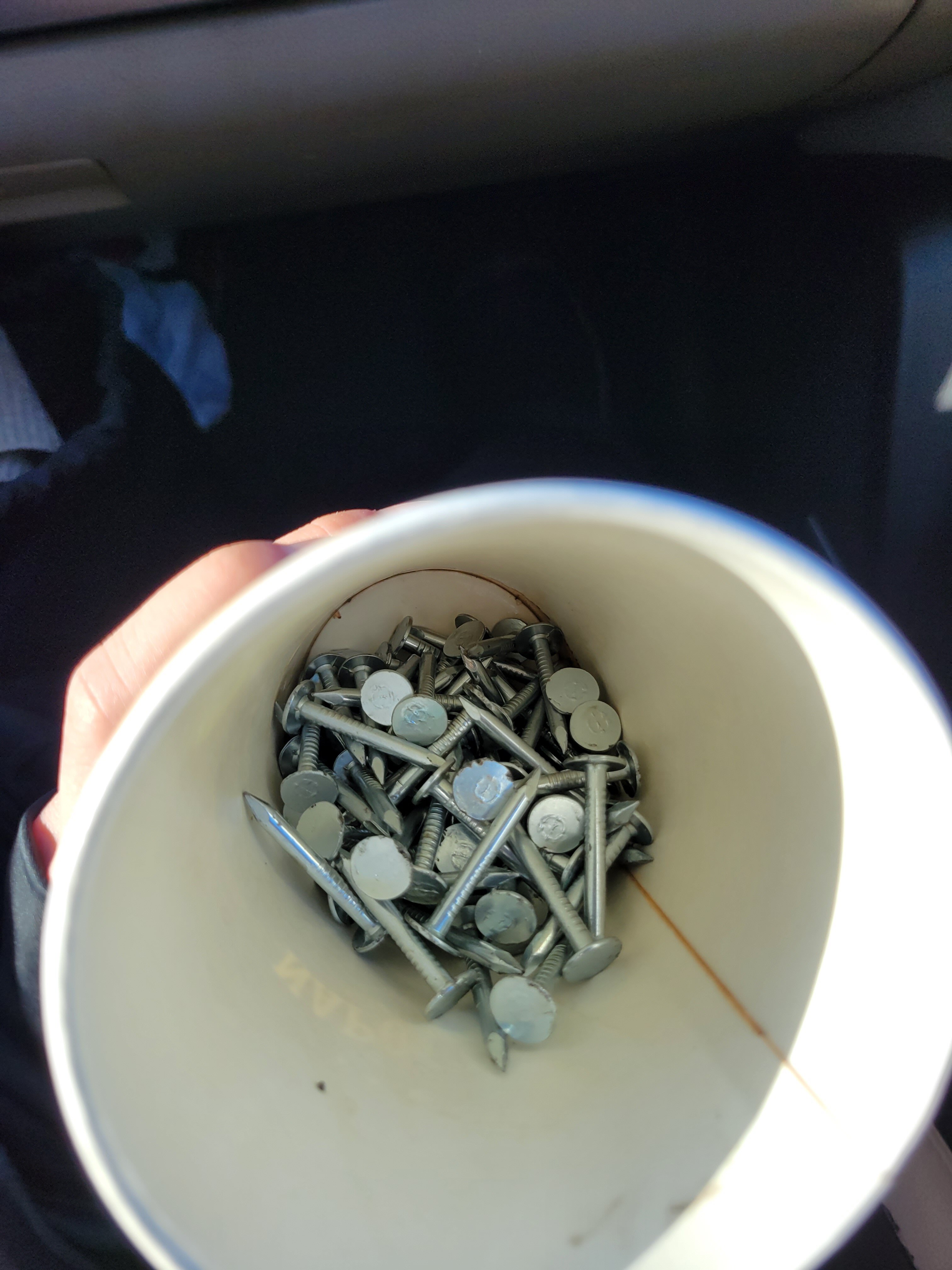 Yes someone drove in front of the convoy and tried to sabotage it, some lunatic that could have caused many accidents. Luckily, the nails were easy to spot as the sun was shining and they were sparkling because of it. We had to stop every couple hundred meters for 5-10km to pick up nails and it was the drivers getting out of their cars to do it by hand. Eventually the police car drove off and didn’t stop again.
