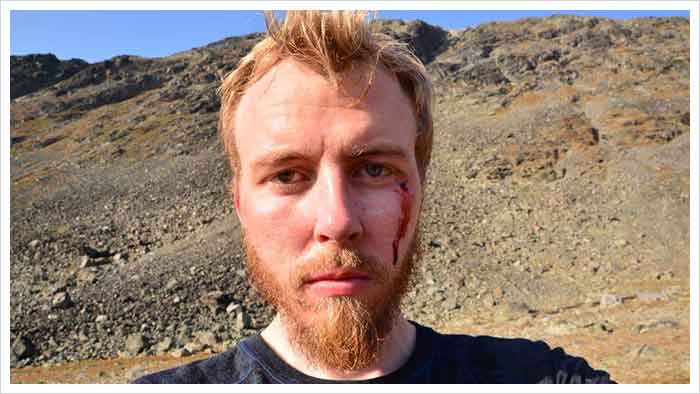 MARKED: Francis Ari Sture shows off the injuries he sustained after being attacked by a golden eagle on his way down from Glittertind.