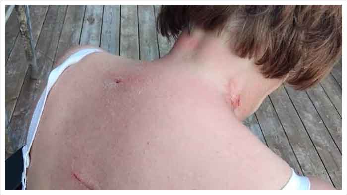 Mariann Myrvang suffered a cut on her shoulder and several wounds on her back. PHOTO: INGE MYRVANG