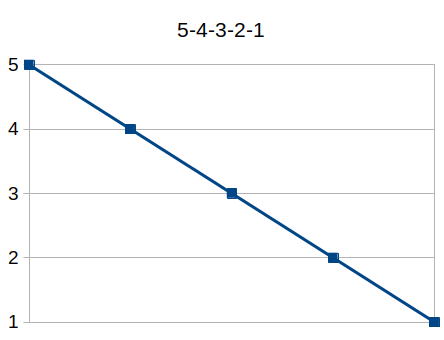 I have noticed that my mind favors 5-3-2-1 over 5-4-3-2-1, which could explain why 5-4-3-2-1 is so effective... because it delivers a shock!