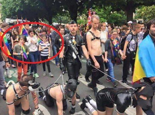 It is disgusting, what a bunch of pervs, and all in the name of tolerance. Bringing children to a LGBT march or whatever they call it is inhuman and child abuse. Besides that, it's more a march of seeing the decline of human society first row center.