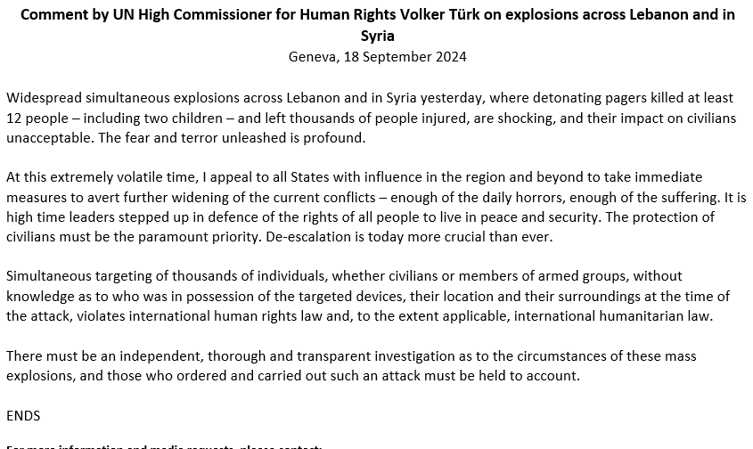 A simple observation: it seems that all governments of all countries have not condemned this attack with pagers in Lebanon… Are they going to use this new form of terrorism (as they did for 9/11) to impose new drastic measures on the population, such as bans (for security reasons, of course) or restrictions on air travel, bans on bringing a cell phone or iPhone with you on your trip, etc.? And also to create a fear of these devices? And slowly lead us towards the 15-minute cities where you won't have a car or a computer or anything at all, just for your own safety?