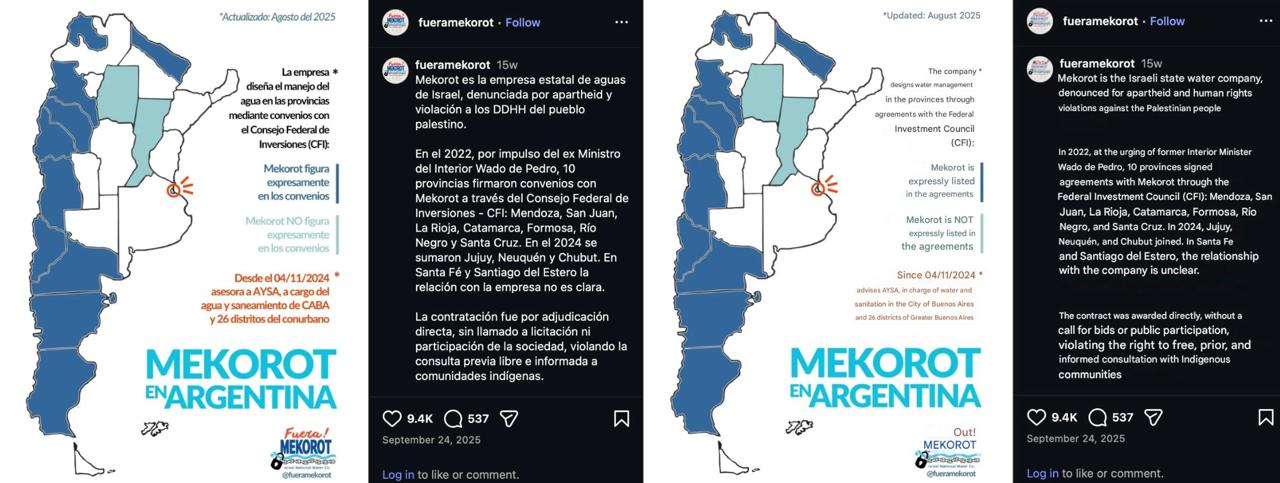 12 Argentine provinces since 2022 (including Mendoza, San Juan, La Rioja, Catamarca, Rio Negro, Formosa, Santa Cruz, Santa Fe, Santiago del Estero, Jujuy, Chubut, and Neuquén), providing “technical assistance” for master plans, economic valuation of water, and regulatory frameworks that critics say pave the way for privatization and exploitation. These opaque agreements, often lacking public consultation and transparency on costs (only Río Negro and Catamarca disclosed spending), benefit