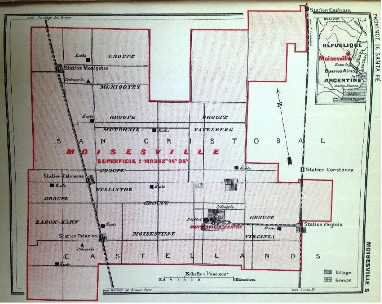 Moisés Ville, 1914: a multi-settlement agricultural colony anchored to regional rail lines.