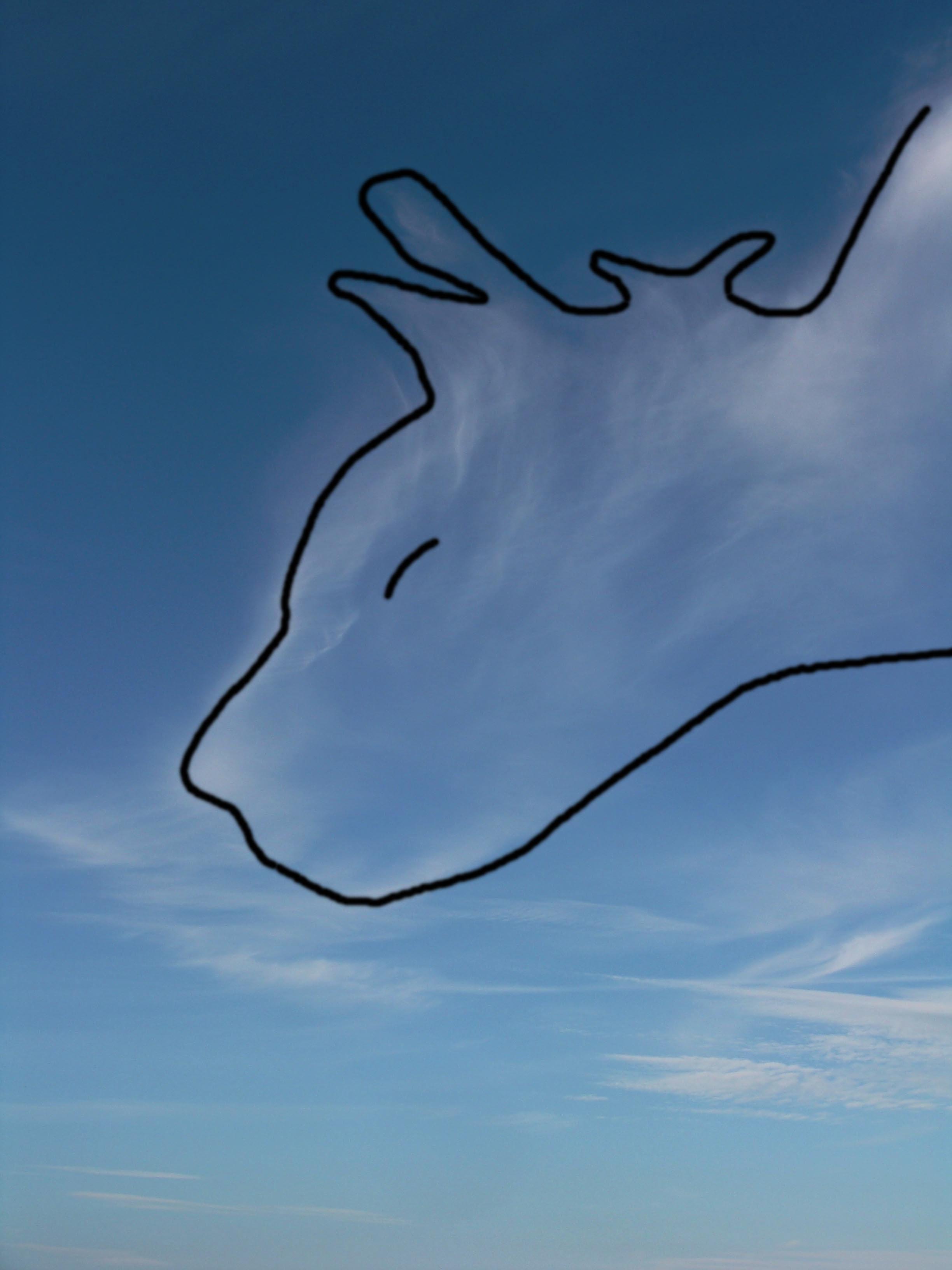 I tried to isolate the image in the clouds, to accent the muzzle and eye.