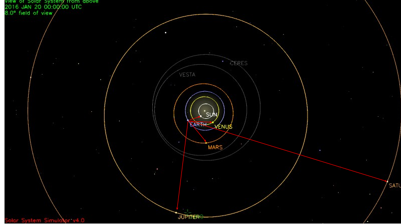 All five planets should be visible simultaneously before dawn beginning around January 20, 2016. And they’ll remain visible before dawn from about January 20 to February 20, 2016.