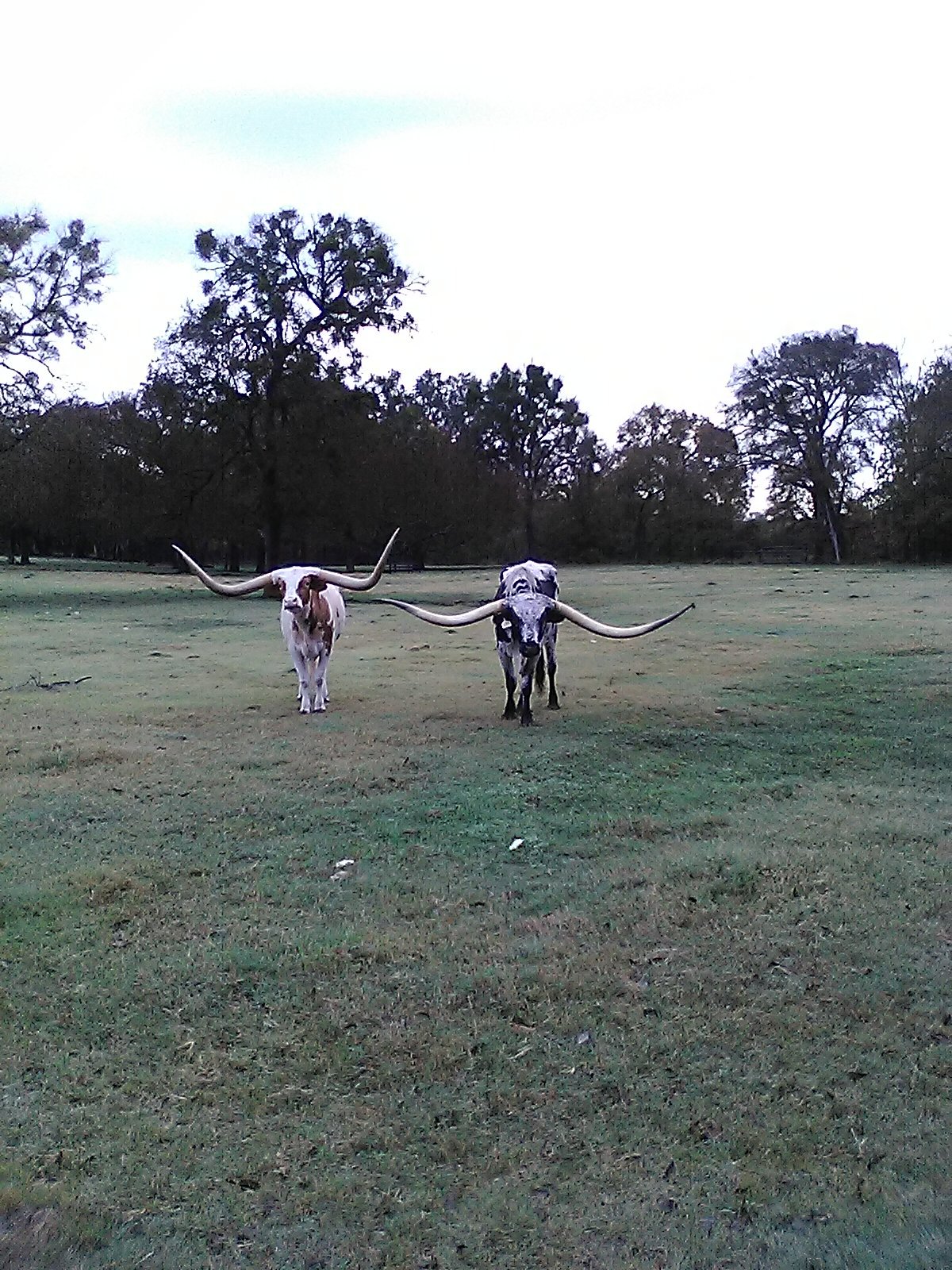 Geeze Louise! I'm amazed they can even lift their heads let alone walk around without knocking each other over or losing their balance.My cow neighbors. Look at those horns!View attachment 113670View attachment 113678