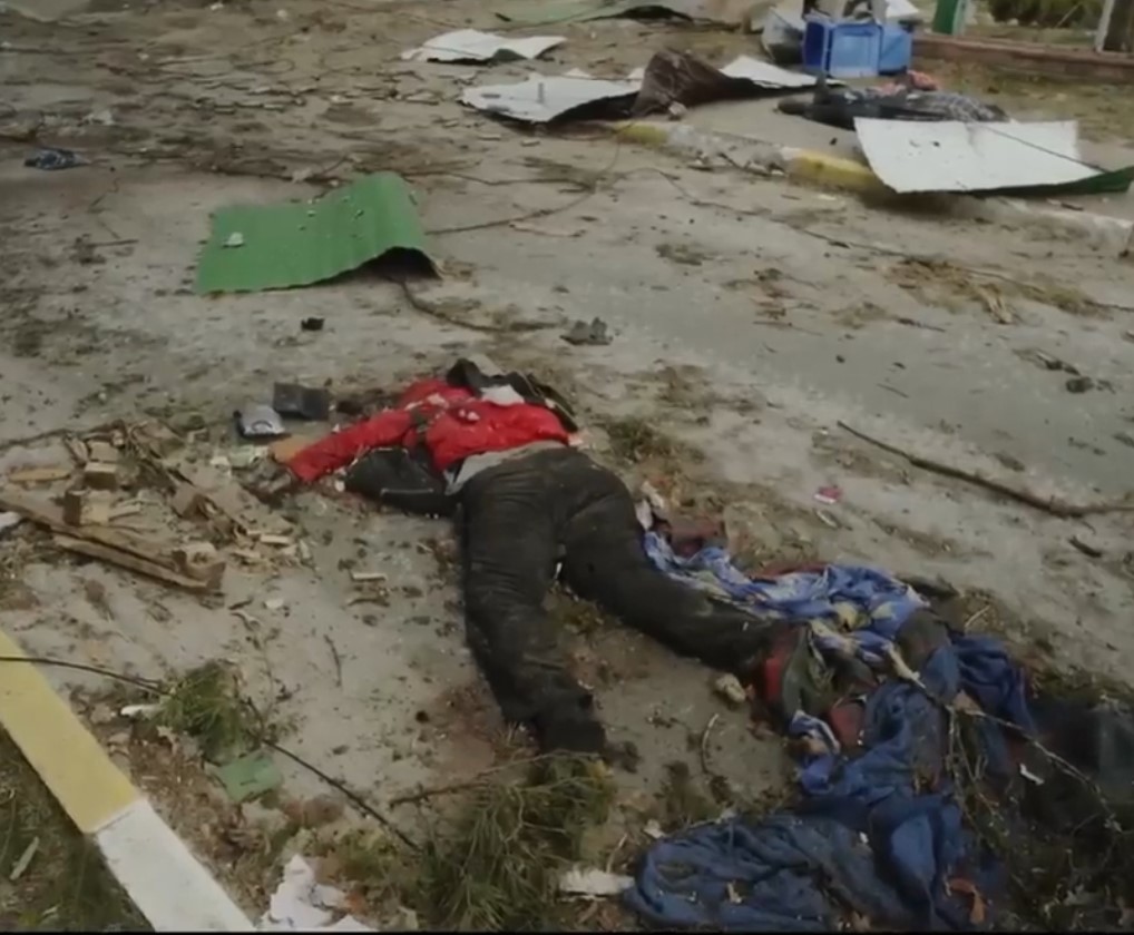 The people below were dead from the battles in Irpen the night before, or so it was presented in Bucha Live 11:10 from March 30.