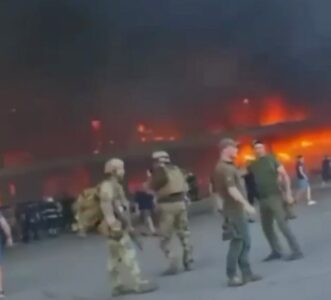 Footage from the area confirms that the attack targeted the military facilities. A lot of servicemen in full military gear are walking near the shopping center.