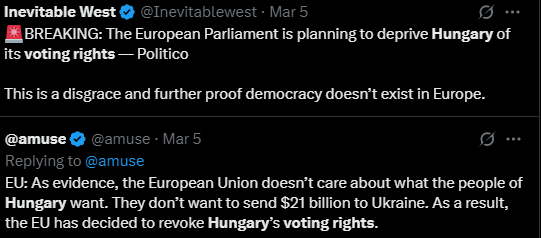 It looks like Hungary's Orban and Slovakia's Fico (who also survived an assassination attempt like Trump) are currently the only hope to prevent the EU from going completely insane regarding Russia.