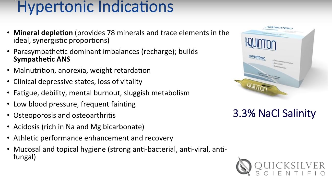 In the case study based on old experiments, for example, Dr. Quinton used only isotonic for malnurrished babies, and then they used also isotonic for misscarriages with a high rate of success, if I understood correctly.