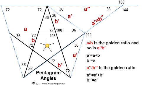 All internal angles of the pentacle are all sums of 216 = 6 x 6 x 6. These measurements tie into the Kabbalah Tree of Life. Here's Wikipedia on Gevurah, the 5th sephirah, ruled by the angelic order of the Seraphim (the fiery ones): Gevurah - Wikipedia