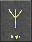 “Algiz is the 15th character of the Elder Futhark alphabet, one of the oldest and most expansive rune alphabets. The earliest clear records of the complete Elder Futhark come from the 2nd century AD, and it was used throughout much of Europe by Germanic, Nordic and Celtic people until the 10th century AD. Algiz is one of the only runes in the Elder Futhark that has never been found to begin a word, it only occurs in the middle or end of a word, similar to the way “er” or “re” are common suffixes in modern English.