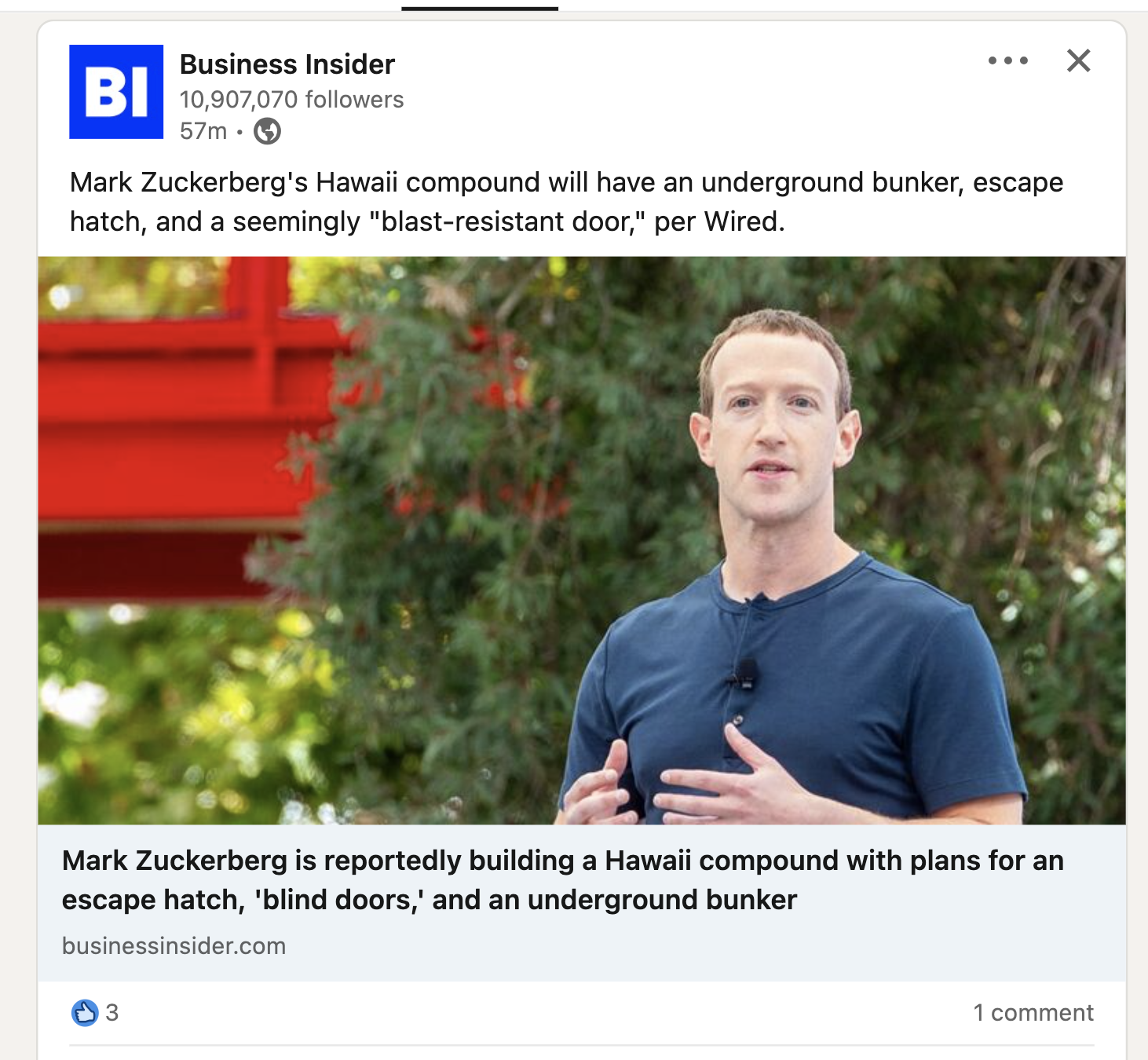 And... now this story about Zuckerberg building underground bunkers in Hawai... Oh well, is that the reason they cleared it up with laser weapons?
