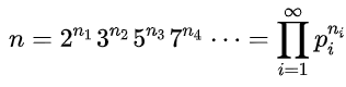 Any natural number can be uniquely represented as an infinite product taken over all the prime numbers, asView attachment 108119where a finite number of the ni are positive integers, and the others are zero.