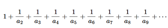 The infinite continuation of a specific sum series. I am assuming the exclamation point is a typo. I could be wrong?