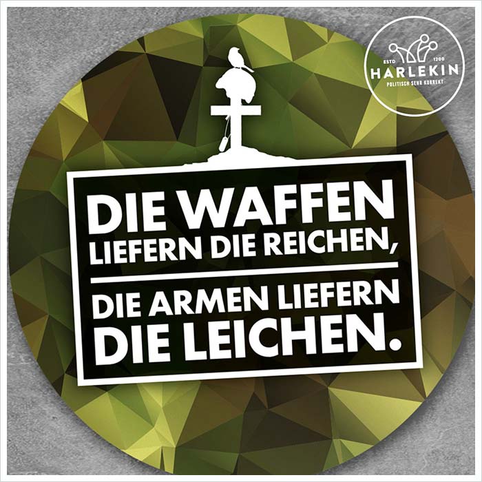 There is a company in Germany, "Harlekin" - which makes a lot of clothes (etc) with slogans on it. The latest iterations, are unusual cynical and direct.