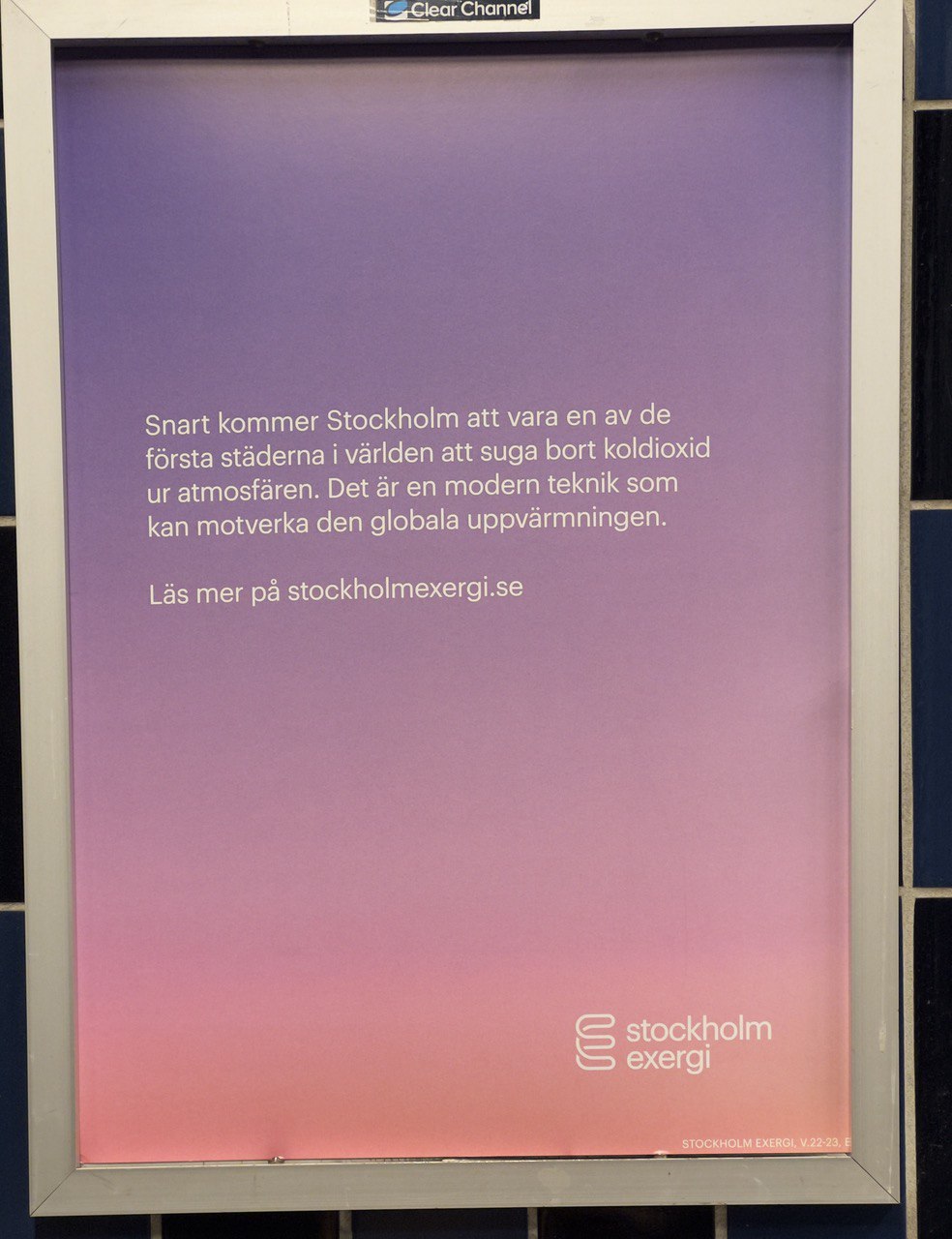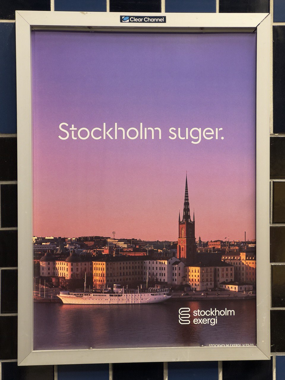 This is the current ad campaign’s title by Stockholm’s Exergy - which citizens can enjoy while rushing to work, or coming from work. Other titles you find are “Stockholm sucks. Very much”.