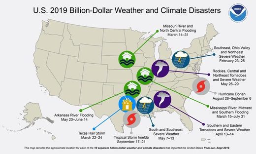 Ten other weather disasters have caused at least $1 billion in damage in the U.S. so far in 2019, according to a government report released earlier in October.