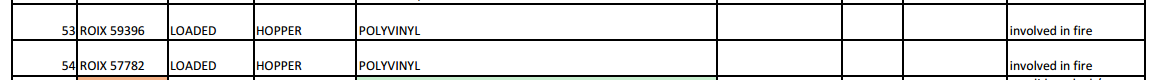As far as the manifest, I mentioned it in my post above. The car that the wheel bearing blew up on was a hopper car full of plastic pellets, there were 3 more of those hopper cars and then 4 tanker cars full of vinyl chloride. It could have been much worse if those plastic pellet cars caught on fire and then caused the vinyl chloride tanks to explode, thankfully that didn’t happen.