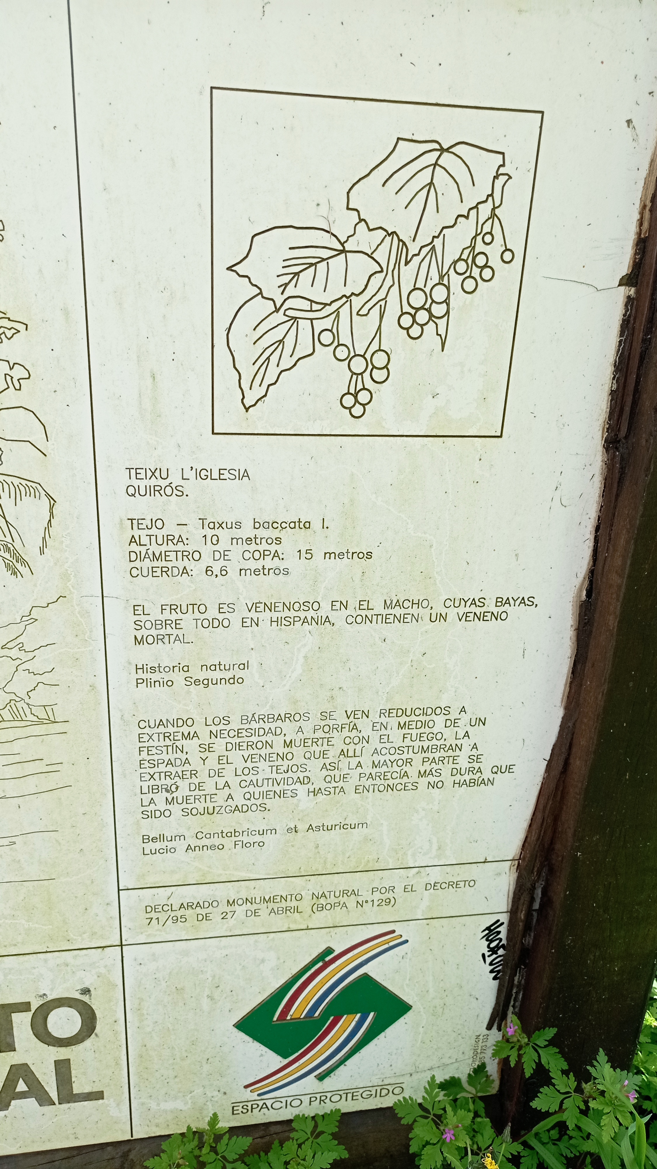 Below is the sign about the yew tree in the photo above, translated into Spanish: