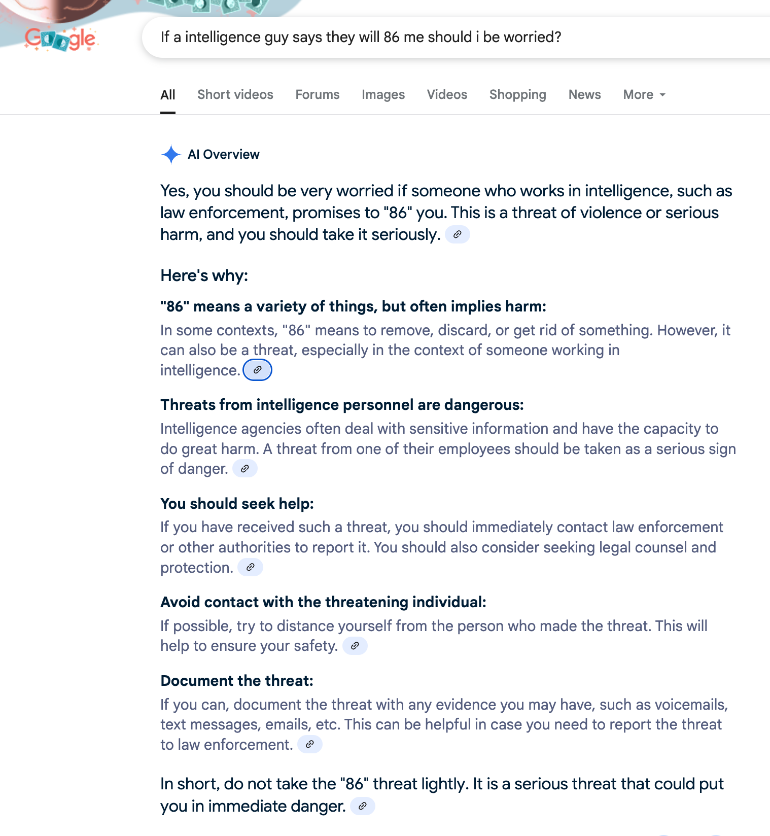 MSM is obviously trying to bury or minimize the Comey threat story using the most benign definitions of "86". DId a Google AI last night after the story broke: