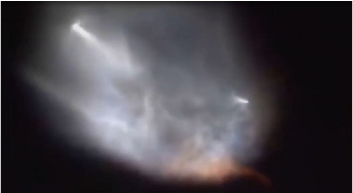 This explosion was accompanied by such visual manifestations that it is difficult even to describe. The "rocket" separated into two objects after the explosion. One went higher, and the second began to emit some wave flashes.