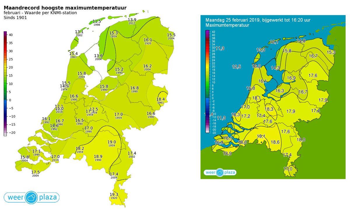 In the Netherlands a new record was set today, February 25 being the warmest day ever measured in a lot of places: