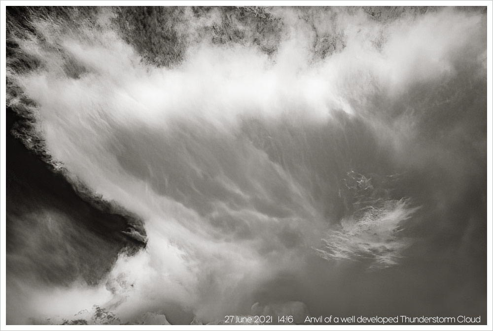 So, while still large parts of the sky where deep blue, with little puffy clouds - you could suddenly hear really loud rumbling thunder. It was an interesting conflict of senses; because seeing innocent blue sky, little white clouds and lots of sunshine... - while in contrast, you hear strong thunder is going on. (Usually when thunder is that loud, the sky is already overcast).