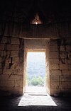 Treasury of Atreus, the Tomb of Clytemnestra and the Tomb of the Genii, are dated to LHIIIB by a sherd under the threshold of the Treasury of Atreus, the largest of the nine tombs. Like the Treasury of